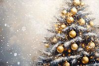 Dit schilderij straalt de warme en feestelijke sfeer van de kerstperiode uit. De met sneeuw bedekte takken van de kerstboom zijn prachtig versierd met glanzende gouden kerstballen en sfeervolle lichtjes. Het ontwerp combineert een elegante mix van goudtinten en een subtiele winterse achtergrond, wat perfect past in een interieur dat een vleugje luxe en gezelligheid wil toevoegen. Ideaal voor de feestdagen of als een tijdloos kunstwerk dat de magie van kerst vangt. Laat dit schilderij uw ruimte verlichten en een glimlach brengen op het gezicht van iedereen die het ziet.