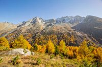 Gouden lariksen en landschap in Arolla Wallis van Martin Steiner