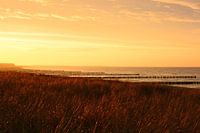 Zonsondergang boven Zingst op het schiereiland Fischland-Darß-Zingst. Oostzee, Mecklenburg-Vorpommern, Duitsland. Genomen in het voorjaar van 2016.
