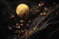Dit unieke ontwerp combineert de mystiek van een volle maan met de schoonheid van gouden bloemen die uit donkere takken lijken te bloeien. De maan straalt een gouden gloed uit, wat een fascinerend contrast vormt met de donkere achtergrond. De bloemen en takken zijn gedetailleerd en lijken bijna tastbaar, terwijl de subtiele glinsteringen in het ontwerp een gevoel van luxe en elegantie geven. Dit kunstwerk is perfect voor moderne interieurs die een vleugje mystiek en verfijning willen toevoegen. Ideaal voor een slaapkamer, kantoor of andere ruimtes waar je een kalmerend, maar toch indrukwekkend accent wilt creëren.