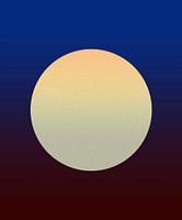Een abstract maar minimaal schilderij van een gouden gloeiende maan in warme kleuren als goud, ivoor, beige, crème, koper en brons op een donkerblauwe, zeer elegante achtergrond met fijne gradiënten en arceringen.