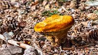 Deze paddenstoel toont zijn prachtige gouden kleur tegen de bruine ondergrond die het begin van de herfst aankondigt.