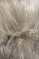"Gouden pluisjes wuivend in het licht" is een macrofoto van een aantal zaadpluisjes aan een pluizenbol van een morgenster (Tragopogon).