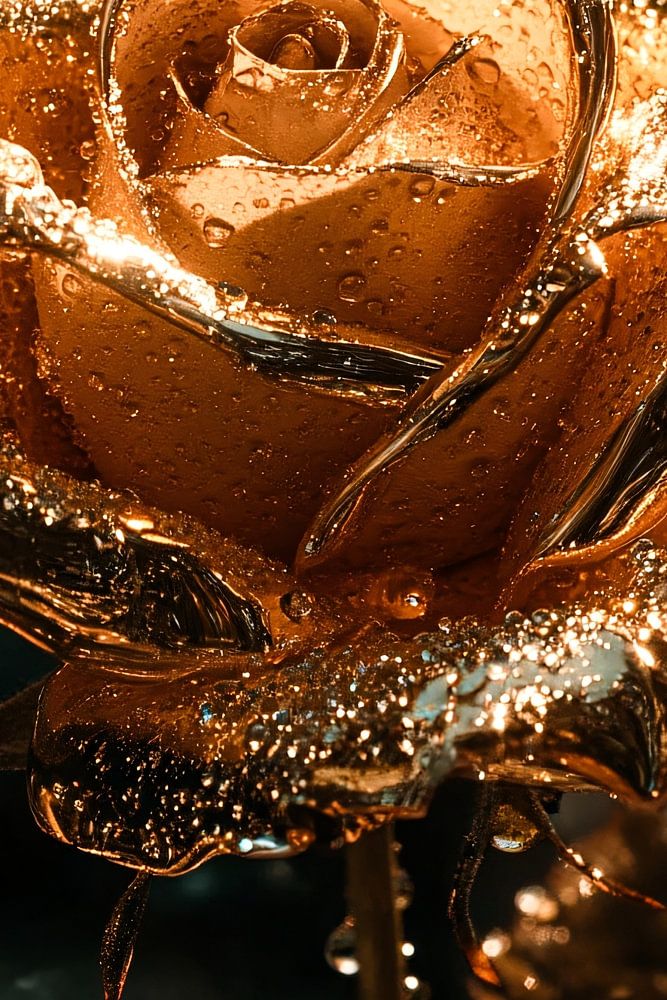 Een oogverblindende gouden roos schittert vol luxe en schoonheid. Het ontwerp vangt de magie van een delicate roos, maar dan volledig uitgevoerd in een luxueuze gouden tint. De glinsterende waterdruppels zorgen voor extra diepte en elegantie, waardoor het lijkt alsof de bloem bedauwd is in een sprookjesachtige wereld. Dit prachtige stuk voegt een vleugje glamour toe aan elk interieur. Het hyperrealistische ontwerp is perfect voor mensen die houden van unieke decoratie en verfijning. Plaats het in de woonkamer, eetkamer of zelfs kantoorruimte voor een stijlvol statement dat luxe en moderniteit combineert. Dit kunstwerk is een eerbetoon aan natuurlijke schoonheid, uitgevoerd in een schitterende gouden afwerking.