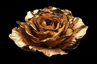 Deze prachtige afbeelding toont een gedetailleerde roos met een opvallende metallic gouden coating. De verfijnde details in elk bloemblad geven de roos een luxueuze en elegante uitstraling, perfect voor een stijlvolle inrichting. Het ontwerp straalt klasse uit en past uitstekend in diverse interieurstijlen, van klassiek tot modern. Door de monochrome kleur in goud en de donkere achtergrond komt de roos extra goed tot zijn recht. Ideaal als decoratie voor ruimtes waar een vleugje luxe gewenst is, zoals een slaapkamer, kantoor of woonkamer. De metallic glans voegt een eigentijdse, kunstzinnige touch toe aan deze klassieke bloem.