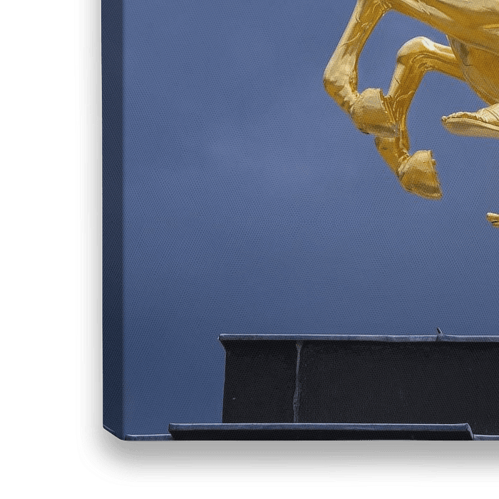 Op dit moment wordt de Gouden Ruiter een symbool van het constante temidden van het onvoorspelbare. Zijn gouden pracht trotseert de onberekenbaarheden die opdoemen en terwijl de wereld om hem heen in duisternis is gehuld, behoudt hij zijn sublieme kalmte. Een indrukwekkend spel van licht en schaduw dat de dualiteit van geschiedenis en tijd vastlegt, terwijl de Gouden Ruiter trots op zijn stenen voetstuk zit, klaar om door de onrust van de toekomst te lopen.