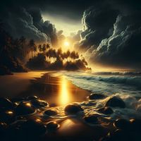 De "Golden Beach" kunstfoto neemt je mee naar een schilderachtige plek waar het warme licht van de zonsondergang de lucht en het zand in een zachte gouden kleur baadt. Golven rollen rustig over het strand terwijl de zon in de horizon verdwijnt en een sfeer van vrede en sereniteit creëert. Deze foto vangt de magie van een perfecte avond aan zee en nodigt je uit om te dromen.