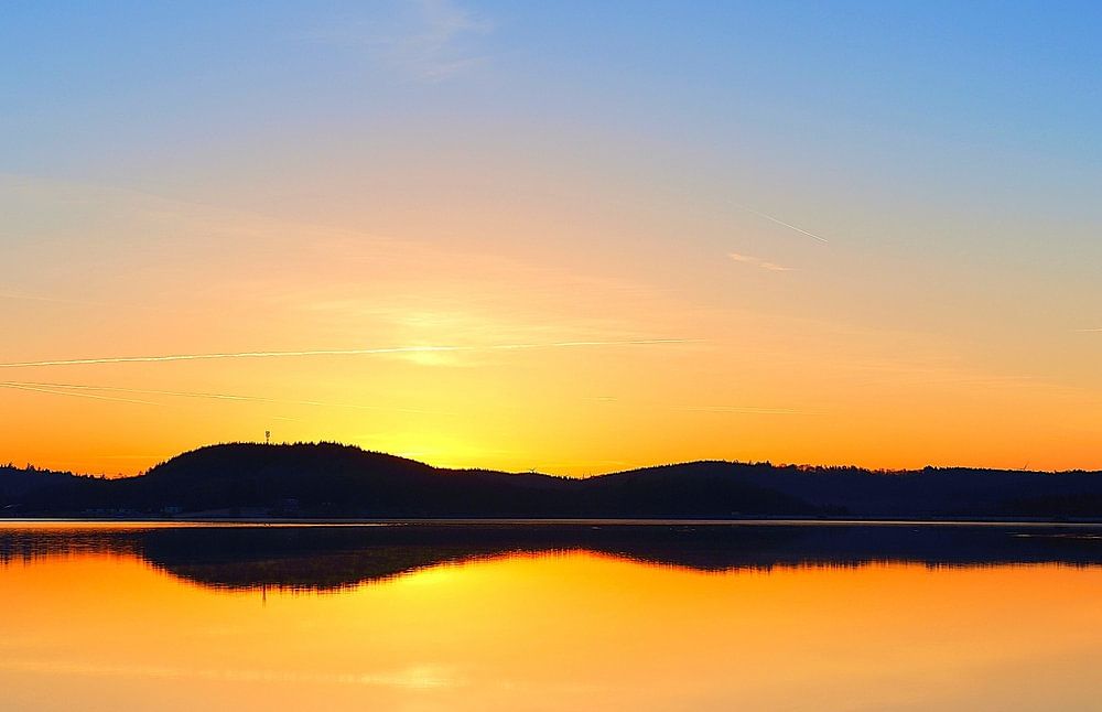 Zonsopgang bij Lake Bostal. Het meer ligt