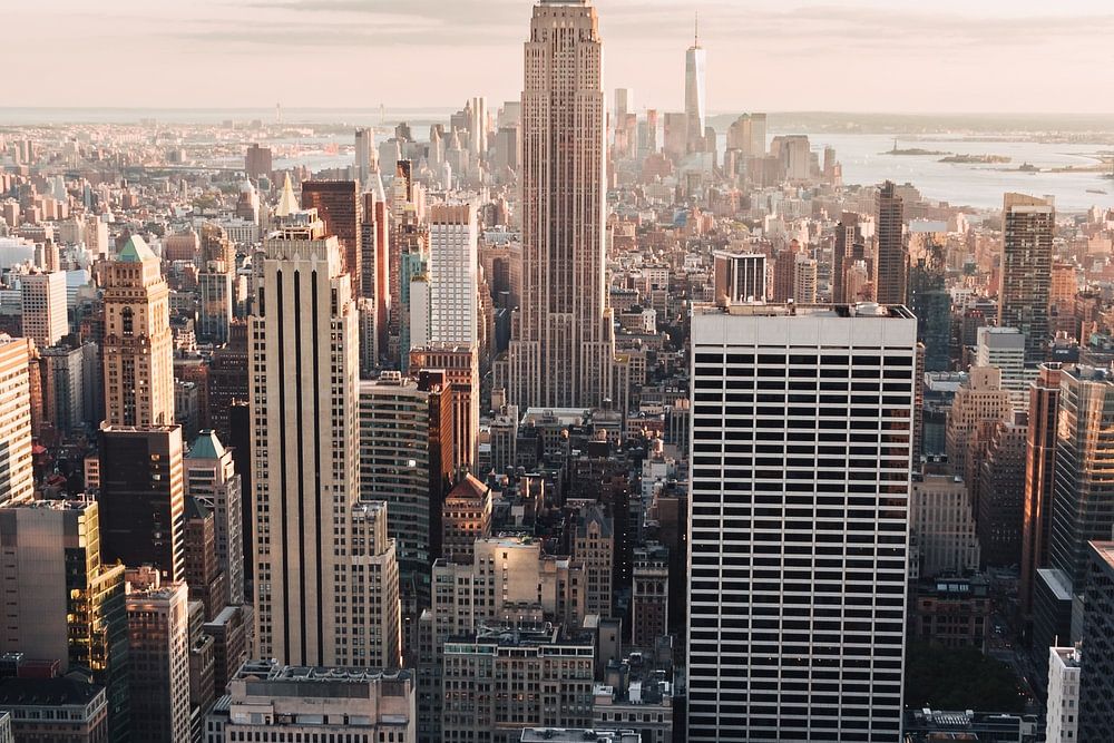 Foto gemaakt tijdens het gouden uurtje in Manhattan New York City. Een mooi uitzicht over de stad, met als hoogtepunt het Empire State building en One World trade.