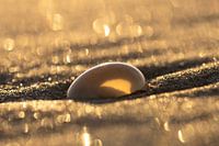 Breng de warme, rustgevende sfeer van een zomeravond in uw interieur met deze betoverende strandfoto. Het beeld toont een enkele, perfect gladde schelp, rustend in het rulle zand. De magie zit in het licht: gevangen tijdens het gouden uur, wordt de scène overgoten met een diepe, warme gloed. De achtergrond is getransformeerd tot een…