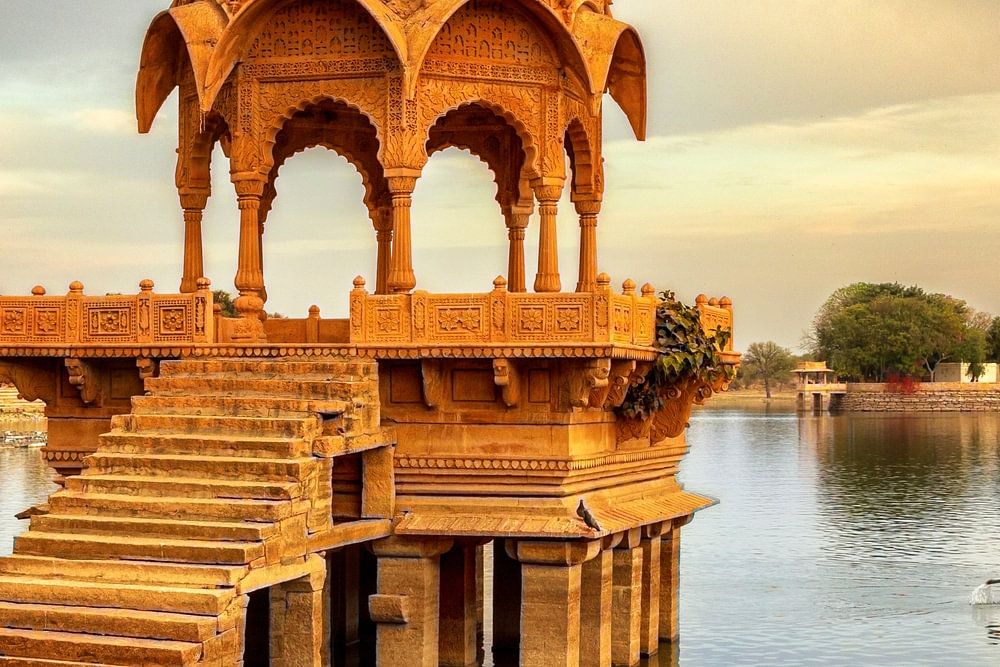 Jaisalmer, in de volksmond de "Gouden Stad" genoemd, is een van de beroemdste bestemmingen in de staat Rajasthan. Gelegen in de meest westelijke regio van Rajasthan, staat de stad bekend als midden in de Thar-woestijn. Het Gadi Sagar-meer, een van de toeristische attracties in Jaisalmer, was oorspronkelijk een door de mens gemaakt reservoir dat was gebouwd om de mensen van Jaisalmer van water te voorzien. De oevers van het meer bestaan uit heiligdommen, tempels, ghats en Chattris waar men kan genieten van boottochten of gewoon genieten van een ontspannende wandeling, vooral op zondagmiddag