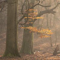 Het gouden uurtje zorgt voor mooie zacht verlichte bomen in het bos bij de Posbank.