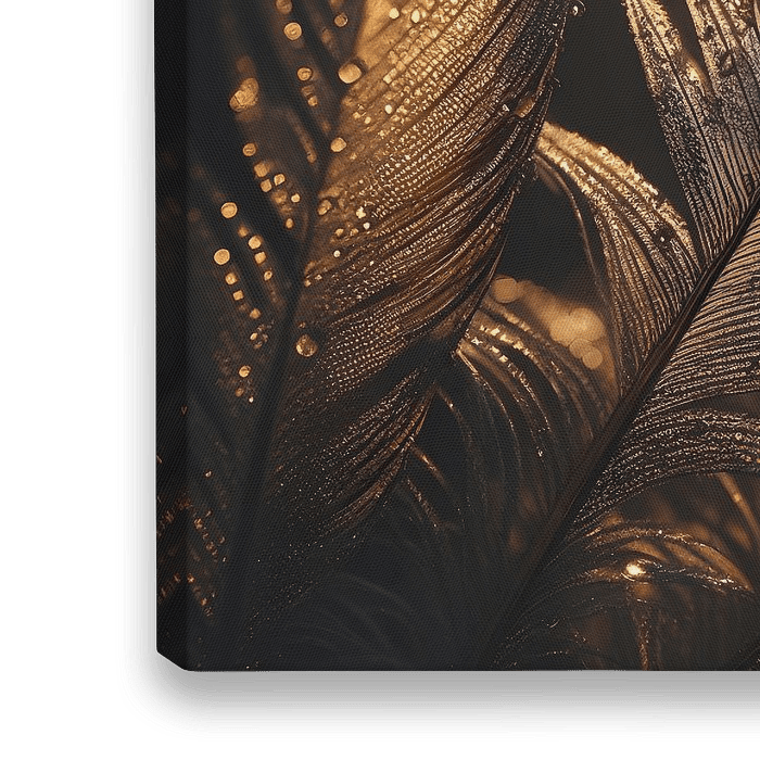 Gouden veer met druppels met inval van zonlicht