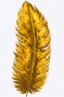 Gouden veer op witte achtergrond. Minimalistisch ontwerp.