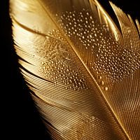 Gouden veer portret schilderij die een luxe toevoeging zal zijn aan elke ruimte. Met zijn unieke en stijlvolle uitstraling is het een ware eyecatcher. De schitterende kleuren en het bijzondere ontwerp maken dit kunstwerk 100% uniek en origineel. Het is de perfecte fotoprint om je interieur helemaal af te maken.