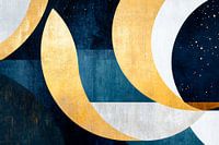 Glinsterende goudtinten smelten samen met diepblauwe en witte nuances om een fascinerend samenspel van geometrische vormen te creëren. De harmonieuze opstelling van de gebogen lijnen straalt rust en elegantie uit, waardoor dit kunstwerk perfect is voor een stijlvolle woonkamer, waar het boeiende gesprekken en een inspirerende sfeer creëert.