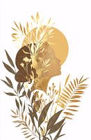 Een elegant en verfijnd ontwerp dat een silhouet van een vrouw combineert met subtiele natuurmotieven in goudtinten. Perfect voor een modern interieur, deze kunst drukt rust en verfijning uit. De delicate details en het minimalistische gebruik van kleuren maken dit kunstwerk een veelzijdige keuze voor diverse ruimtes zoals de woonkamer of hal. Voeg een vleugje stijl en elegantie toe aan je huis met dit tijdloze ontwerp.