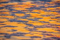 De zon is bijna onder bij strand de Voordijk tussen Callantsoog en Groote Keeten op 19 mei 2021. De zon zorgt voor een gouden zee.