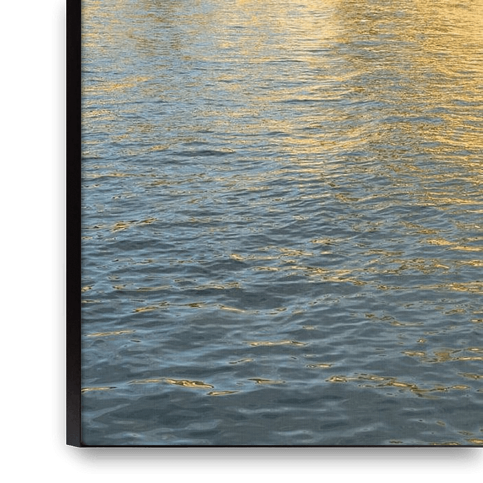 Koop de foto Gouden zeewater, spiegelend wateroppervlak van Adriana Mueller als print op canvas, aluminium dibond, (ingelijste) fotoprint, behang en ArtFrame. Voor jou op maat geprint in Fine-Art kwaliteit.