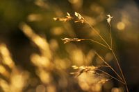 Zomerse aanblik van tarwe in de ondergaande zon. De bokeh die er gevormt wordt door de zonnestralen op de vegetatie geven de foto een warm uiterlijk.