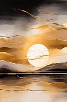 Deze artistieke creatie brengt een serene en moderne sfeer in elke ruimte. Het ontwerp combineert een minimalistische zonsondergang met prachtige gouden accenten die elegantie en warmte uitstralen. De vloeiende lijnen en contrasterende kleuren van goud, zwart en wit creëren een verfijnd beeld dat perfect is voor eigentijdse interieurs. Dit kunstwerk is niet alleen een blikvanger, maar ook een rustgevend element dat een gevoel van balans en harmonie in uw huis of kantoor brengt. Ideaal voor slaapkamers, woonkamers of werkruimtes waar een vleugje luxe gewenst is.