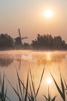 Een zonsopkomst met een gouden randje in de Betuwe bij Ophemert. Na een winstille nacht is mist ontstaan, die bij het ochtendgloren en de eerste wind danst over het water.