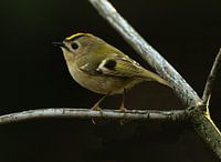 De Goudhaan, slechts 8 cm groot, wat een kleine druktemaker. Kan niet stil zitten en zingt als een grote. Een hele klus om hem op de foto te krijgen, maar als het dan lukt......