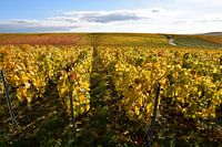 Koop de foto Goudkleurige wijngaard in de herfst van Studio LE-gals op canvas, aluminium dibond, (ingelijste) fotoprint, behang en ArtFrame, op maat geprint in Fine-Art kwaliteit.
