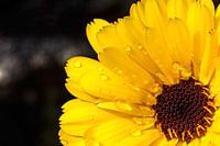 Goudsbloem, gele bloem , tuin bloem , gezondheid, Calendula officinalis , schoonheid, macro, bloem macro, geel, zwart , plantkunde , flora , bloemisterij , modern, tuinen, natuur , betoverende , regendruppels , het fonkelen , stilleven , water dalingen , dalingen foto druppels