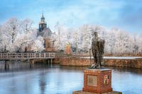 Standbeeld van de Lamoraal Graaf van Egmont (1522-1568) in de slotgracht. De Lamoraal heeft er in 1565 voor gezorgd dat de Egmondermeer polder voorzien werd van dijken.