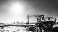 Graafmachine aan het werk op de bouwplaats. De eerste fase van het bouwproject "De Contreie" in Oosterhout.