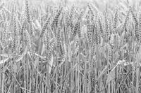 Graan, in zwart-wit, voedsel dat wereldwijd wordt gegeten. Graan is de verzamelnaam voor de zaden van grassen, rijst, tarwe, gerst, rogge, maïs, haver, gierst en spelt. Dit veld met graan lag in het Brabantse land, tussen Hank en Nieuwendijk, vlak bij Nationaal Park De Biesbosch in Nederland.