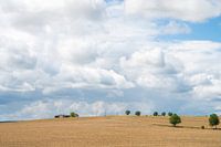 Graanvelden in de Loire regio. Met de wolkenpartij erboven lijkt het wel Toscane, maar het is toch echt Frankrijk. De grillige wolken kleuren mooi met de gemaaide graanvelden in het glooiende landschap.