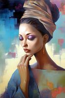 Abstract kleurrijk schilderij portret van een mooie serene vrouw.