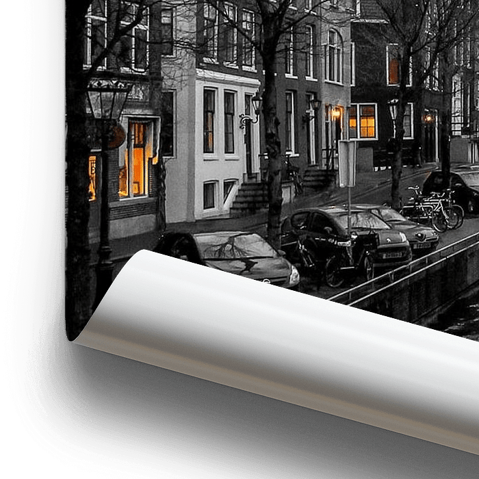 Zwart/Wit met kleur, Grachten Amsterdam in de Nacht