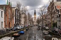 De enige gracht in Amsterdam waarbij het zicht op een kerk zo mooi is. De hevige kou zorgde voor ijs in de Amsterdamse grachten, waarbij hier de Groenburgwal is afgebeeld. Op de Prinsengracht en Keizersgracht werd zelfs geschaatst .