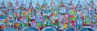 De herkenbare oude oer Hollandse steden met oude pandjes met geveltjes. De sfeer van de stad met het water waar de bootjes rondvaren .Een hedendaags figuratief geschilderd stadsgezicht .