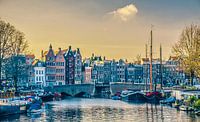 Grachtenpanden in het centrum van Amsterdam. De oude 17e eeuwse binnenstad met grachten, grachtenpanden en boten. Gefotografeerd in de winter op een namiddag.