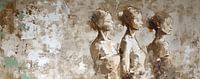 Gracieuze Aarded Tonen - Met subtiele penseelstreken en een aarded palet onthult dit schilderij drie gracieuze figuren die zich afwenden van de toeschouwer, en creëert een intrigerende dialoog tussen vorm en leegte. Het gebruik van textuur en gelaagdheid geeft het werk een rauw randje, terwijl de zachte contouren en abstracte benadering een moderne touch aan het klassieke portret toevoegen.