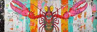 Graffiti Splash Encounter - Dit kreeftenschilderij onthult een levendige en complexe samenstelling waarin twee prominente kreeften centraal staan. De stijl van het kunstwerk is een dynamische mix van pop art en graffiti. De eerste kreeft, aan de linkerzijde, is uitgebeeld in een explosie van roze met details die lijken op teksten en…