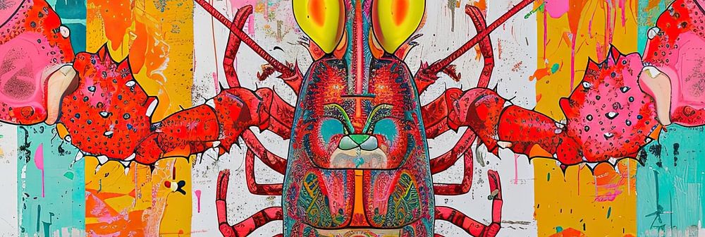 Details: kreeft, kunst, schilderij, pop art, graffiti, neon, roze, rood, interactie