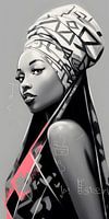 Afrikaanse vrouw, in Graffiti stijl, zwart-wit met roze.