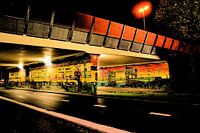 Digitale kunst. Graffiti op de steunpilaren van een viaduct. Foto bewerkt tot tekening
