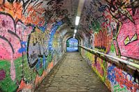 Terwijl we naar een leuke wijnbar liepen, moesten we langs deze tunnel, versierd met graffiti. Normaal ben ik niet zo'n fan van graffiti, maar in dit geval werkte het goed.
