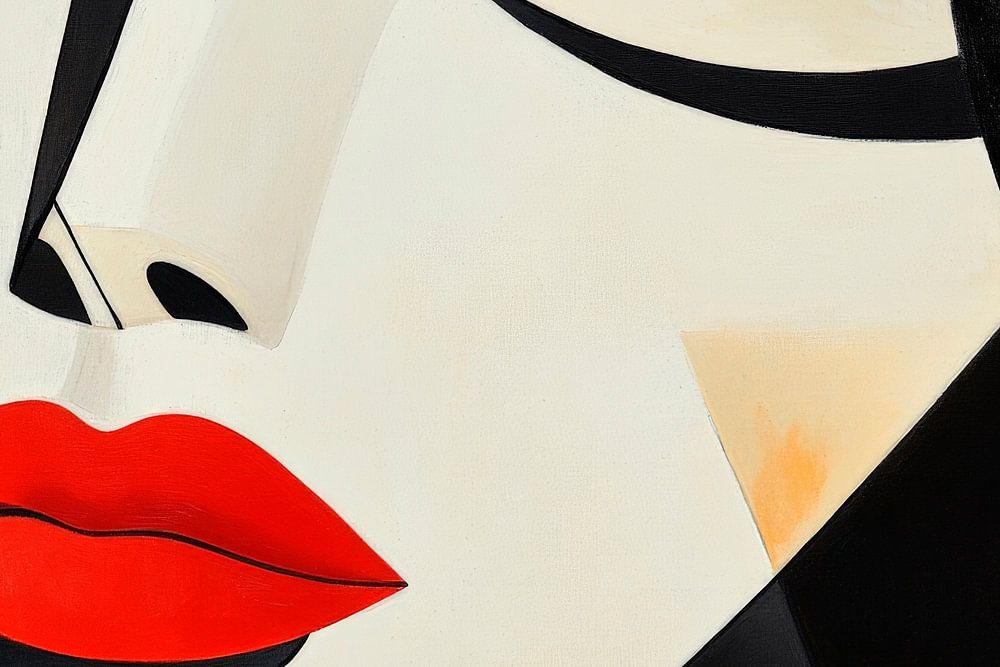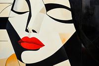 Er ontvouwt zich een fascinerend spel van vormen en kleuren dat de zintuigen prikkelt. De zachte rondingen en scherp gedefinieerde contouren van een gestileerd gezicht springen in het oog. De felrode lippen contrasteren indrukwekkend met de warme achtergrond, perfect voor een woonkamer die elegantie en expressiviteit uitstraalt. Een echte blikvanger die gesprekken stimuleert!