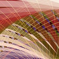 Grafisch spel met lijnen die door overlapping samenvloeien tot decoratieve patronen en vormen...Minimalistisch en kleurrijk. Ontwerp voor het woongedeelte.