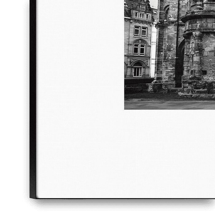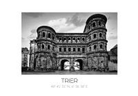 Deze grafische poster toont de Porta Nigra, het iconische Romeinse stadspoort van Trier, de oudste stad van Duitsland. De poort is een imposant overblijfsel uit de Romeinse tijd en staat op de werelderfgoedlijst van UNESCO. De foto legt het monument vast in een krachtig zwart-wit beeld, waarbij de ruwe texturen van het eeuwenoude…