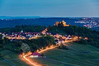 Grafkapel op de Württemberg in Stuttgart-Rotenberg bij nacht.