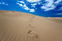 Voetafdrukken in de duinen van Gran Canaria, Canarische Eilanden.