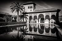 De foto werd genomen in het Alhambra van Granada en toont een zicht op de Torre de las Damas met zijn prachtige portiek (El Partal).